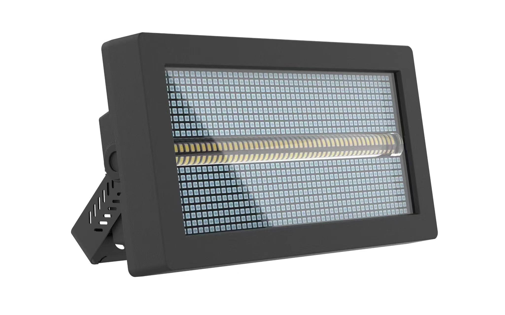 电压: AC100~240V 50/60HZ 功率: 1000W 灯珠: 256颗3030白光1瓦 864颗5050 RGB0.3瓦灯珠 控制方式: DMX512、自走、主从、声控、带RDM功能。 通道: CH04、CH17、CH121、CH145 调光: 32bit 0~100%线性调光 特点:96段RGB+32段60种效果+染色+爆闪 工作温度: -30度~60度 频闪频率: 1~30HZ 外观: 金属、黑色 连接方式:DMX512输入输出 / 电源输入输出。 IP 等级: IP20